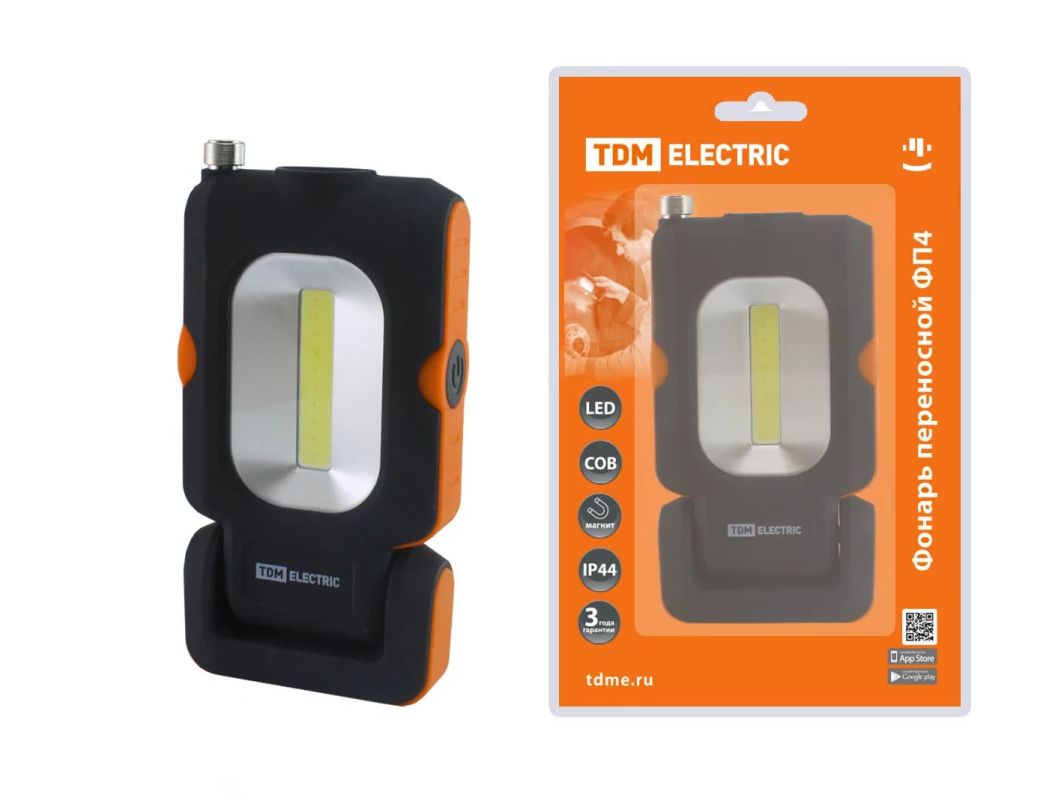 Фонарь переносной светодиодный ФП4, 1 Вт LED+3 Вт COB, 110 лм, 3хААА, магн., телескоп, TDM