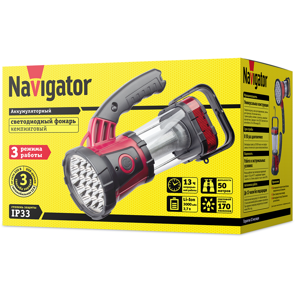 Фонарь-прожектор аккумуляторный кемпинговый 94 926 NPT-CA08-ACCU 19/24/4LED аккум. 3.7В 2А.ч пластик. NAVIGATOR