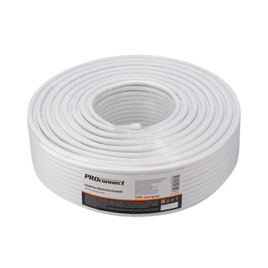 Кабель RG-6U (75 Ом), CCS/Al/Al 48%, бухта длиной 100 м, PROconnect коаксиальный радиочастотный (антенный, телевизионный) со вспененной полиэтиленовой изоляцией в ПВХ-оболочке. Является самым распространенным решением для подключения внутренних и межблочных соединений общепромышленных и бытовых радиотехнических устройств, для подключения систем телевидения, а также для подключения видеокамер наружного и внутреннего наблюдения.