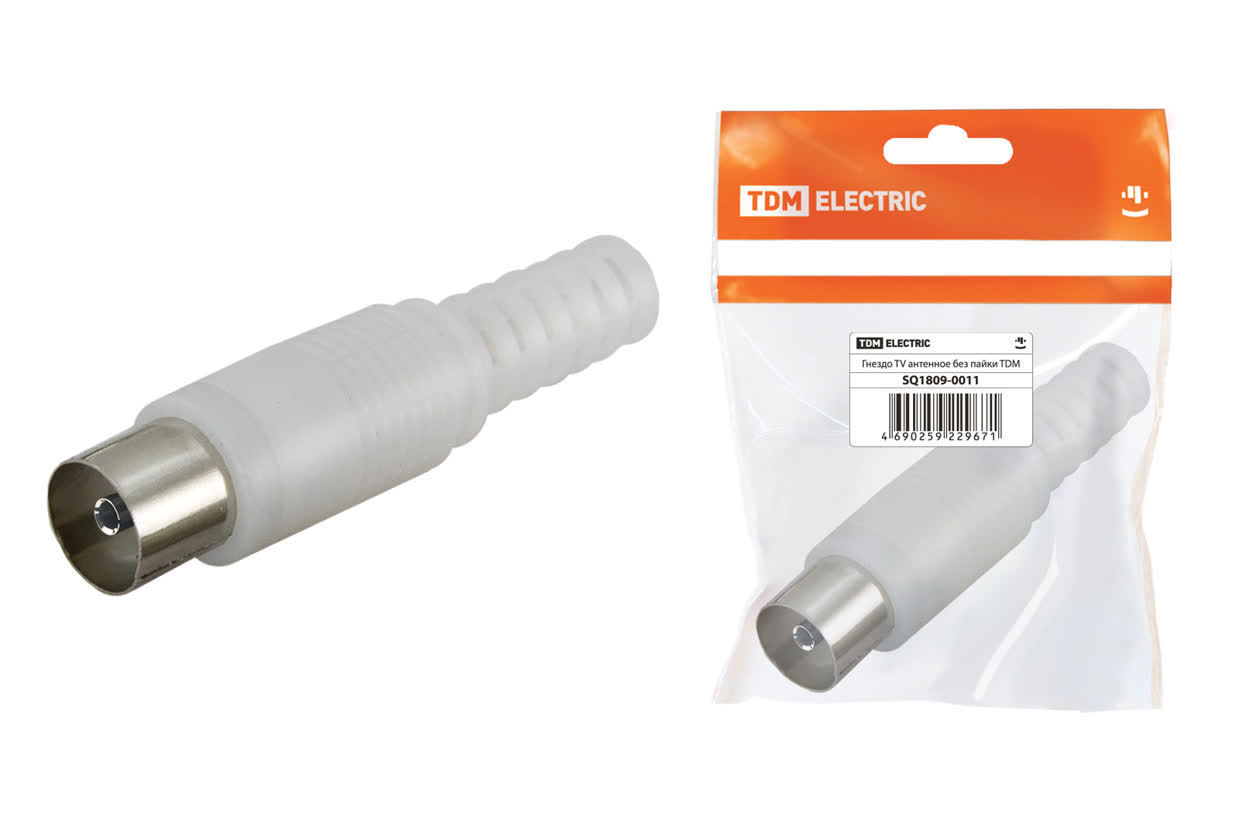 Гнездо TV антенное пласт. без пайки белое, инд. упаковка TDM