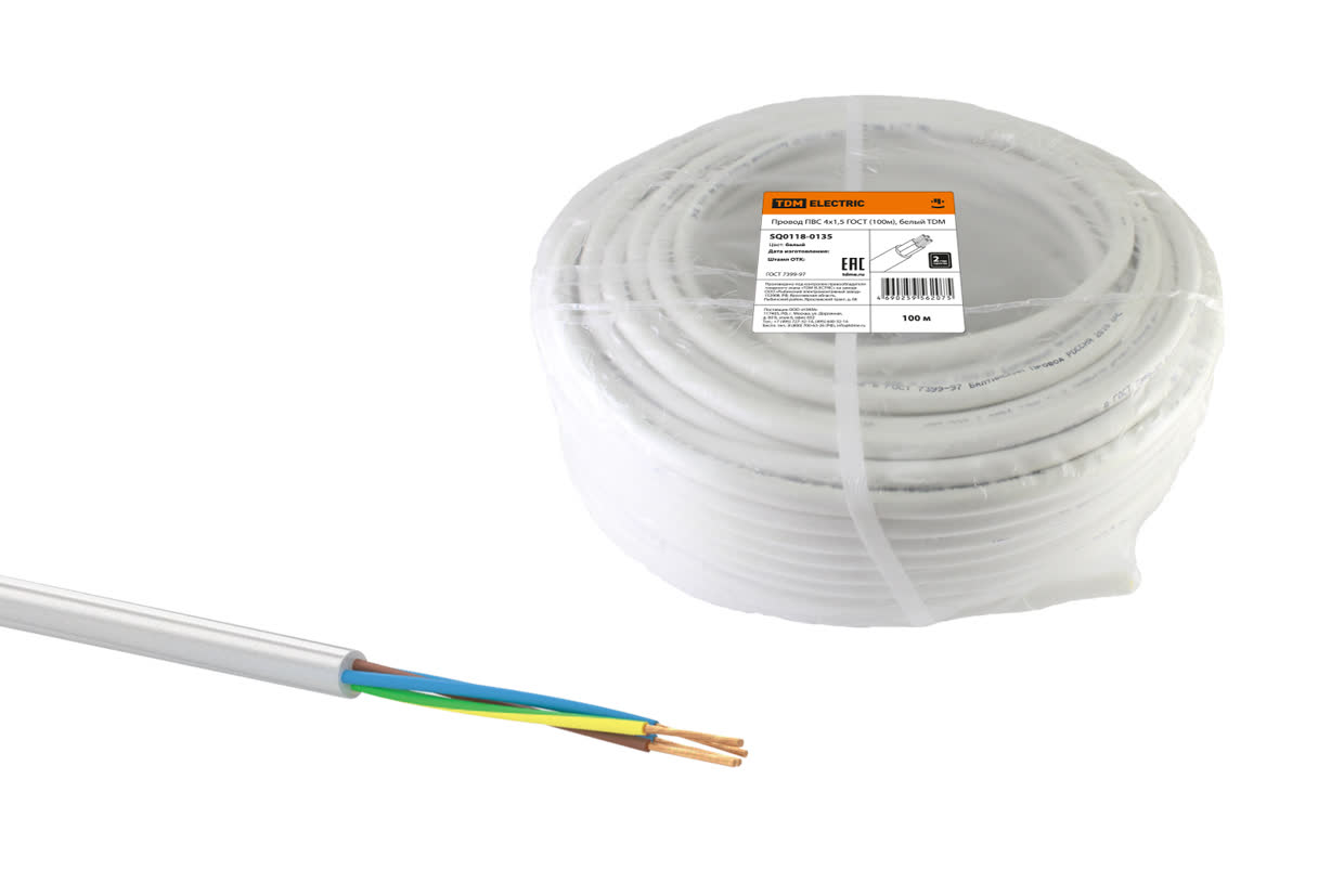 Провод ПВС 4х1,5 ГОСТ (100м), белый TDM