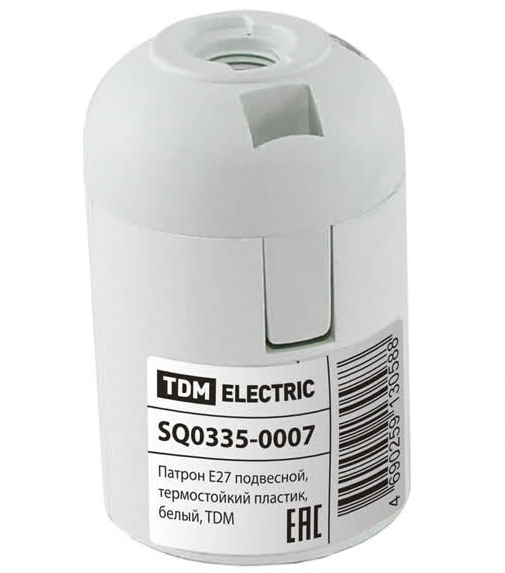 Патрон Е27 подвесной, термостойкий пластик, белый, TDM
