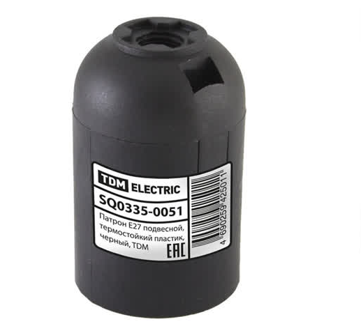 Патрон Е27 подвесной, термостойкий пластик, черный, TDM