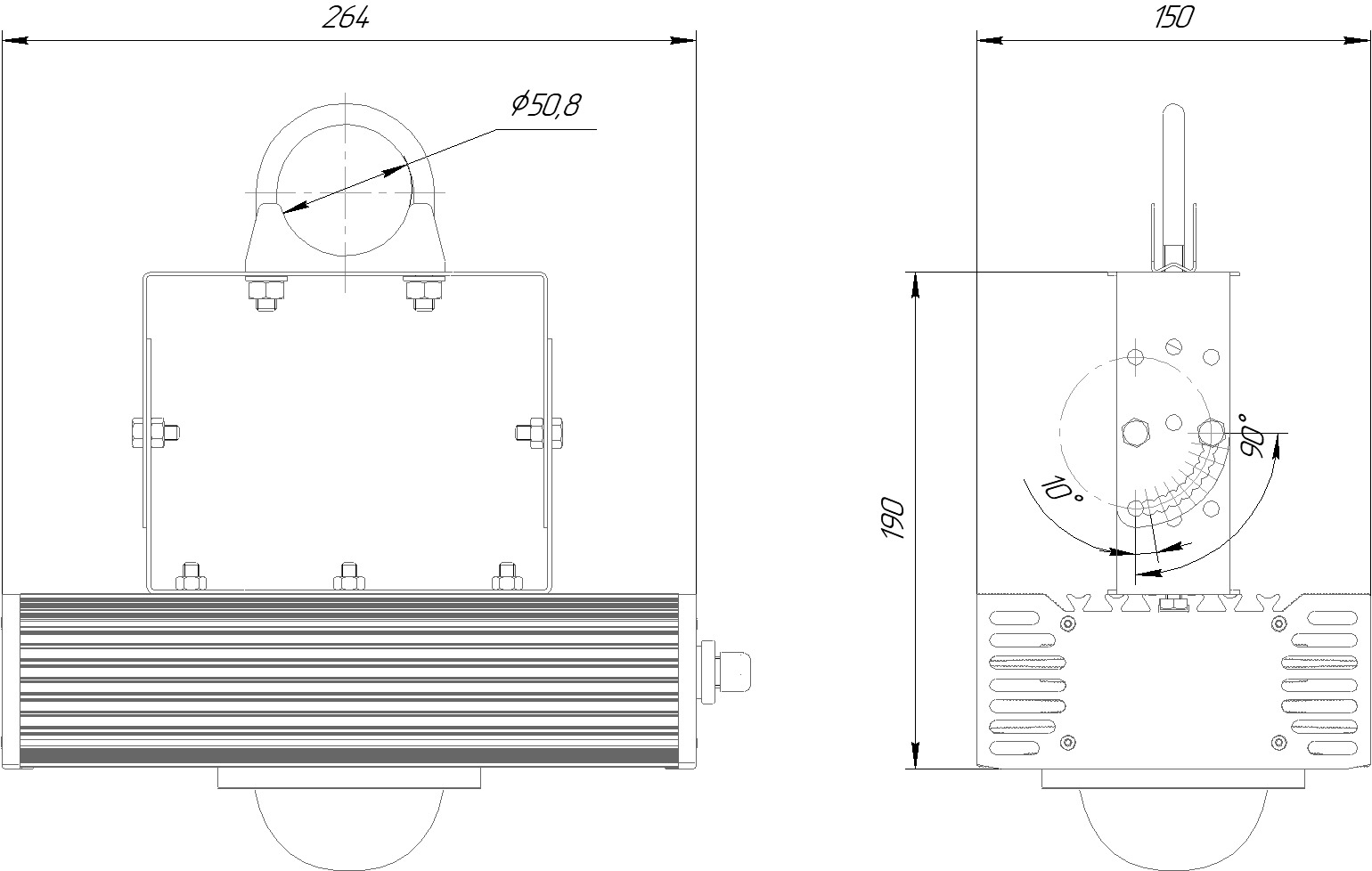 - Корпус: Литой экструдированный алюминиевый анодированный профиль